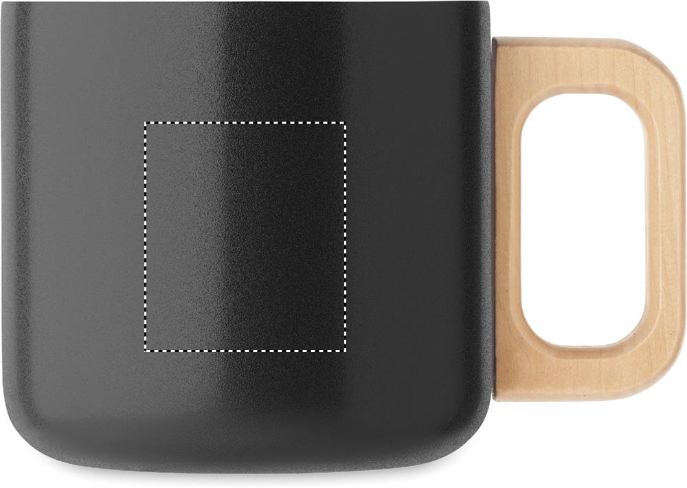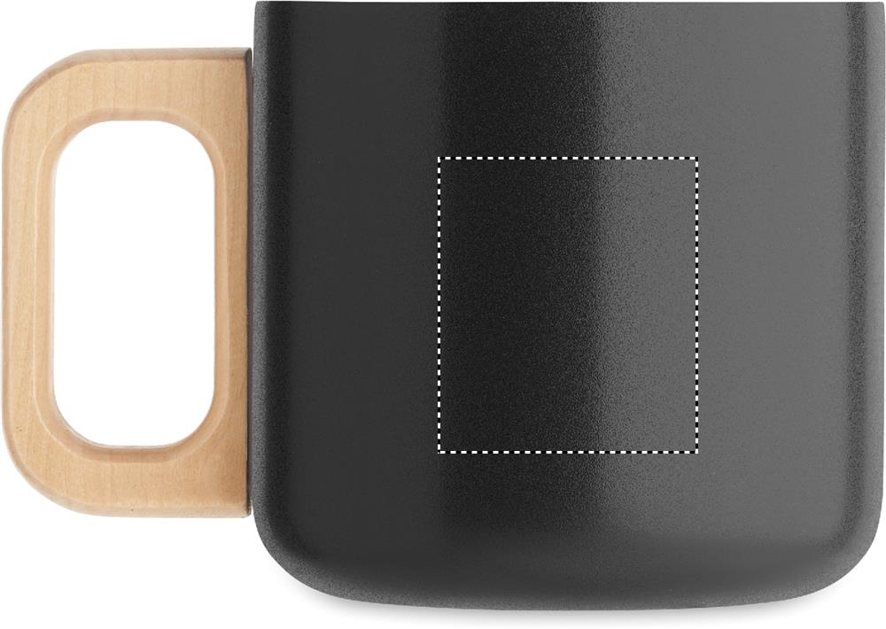 Doppelwandiger Becher aus recyceltem Edelstahl (90 % recycelter Edelstahl und 10 % Edelstahl). Griff aus Holz. Füllmenge: 350 ml.