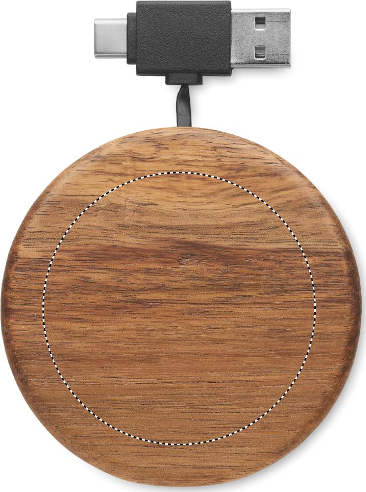 Kabellose Ladestation. Gehäuse aus Akazienholz. Einziehbares Kabel. Verbinden Sie das Gerät mit dem Computer und laden Sie Ihr Smartphone durch einfaches Auflegen auf. Ausgang: DC 9V/1.67A (15W). Kompatibel mit allen QI-fähigen Geräten wie den neuesten Android Smartphones, iPhone® 8 und X und höher.