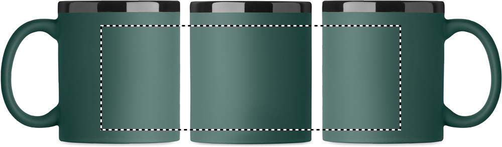 Keramikbecher mit Soft-Touch-Oberfläche und schwarzer Innenseite/Rand. Ideal für Gravur. Füllmenge: 300 ml. Einzeln verpackt in weißer Schachtel.