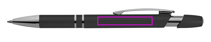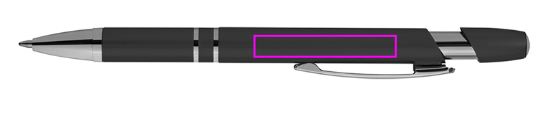 Metallisch anmutender Kunststoff-Kugelschreiber mit Großraummine und Druckfunktion. Ihre Werbung drucken wir unterhalb des Clips.