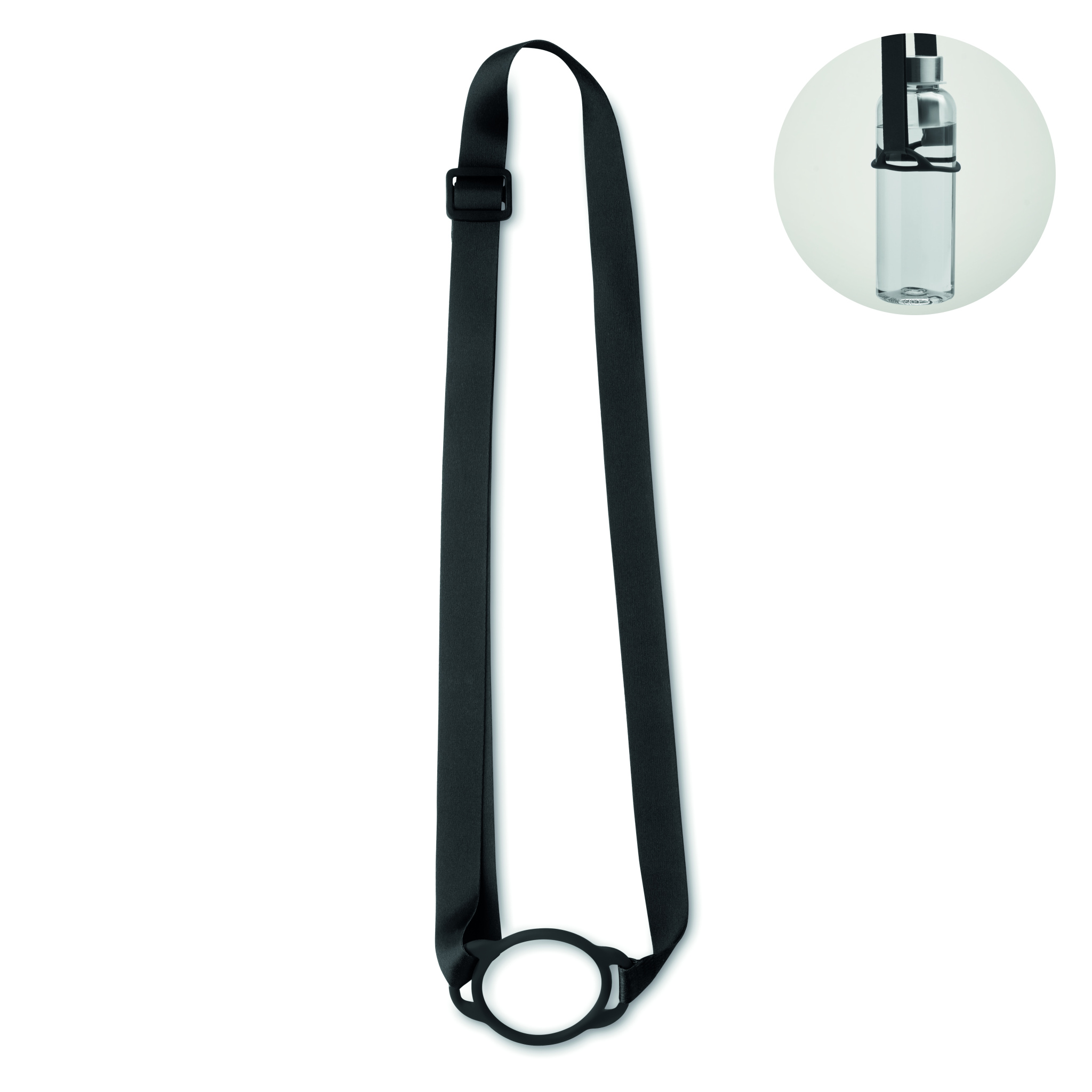 Lanyard mit Getränkehalter aus Silikon (Ø 6 cm) und verstellbarer PP-Schnalle. Ideal für Becher. Lanyard: 20 mm breit.