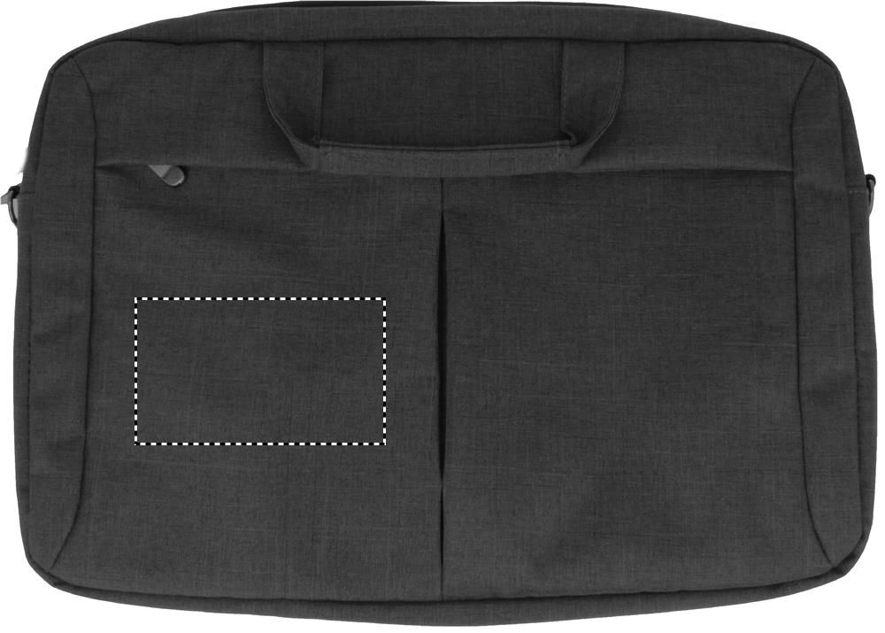15" Laptop Tasche aus 2 farbigem Polyester 320D mit einem Hauptfach für einen Laptop, sowie Tablet-Innenfach und einer unterteilten Reißverschlussfronttasche mit Stiftschlaufe und 2 Fächern. Abnehmbarer und verstellbarer Schultergurt. Mit Trolley-Halterung.