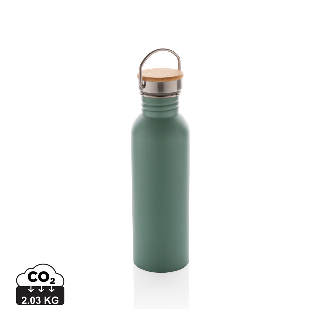 Moderne Stainless-Steel Flasche mit Bambusdeckel, Grün