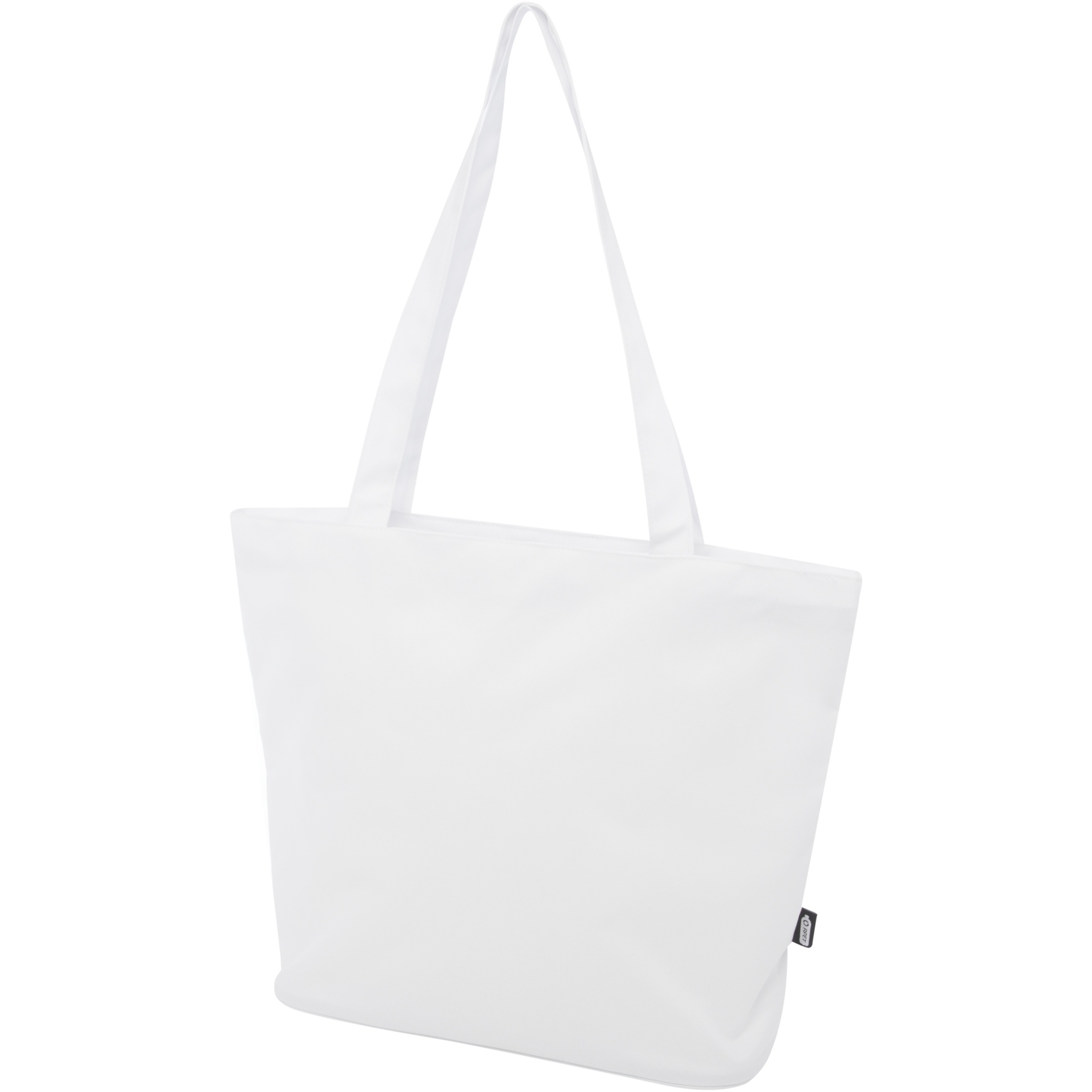 Die Panama GRS-recycelte Tragetasche mit Reißverschluss aus wasserabweisendem 600D RPET ist eine perfekte und nachhaltige Mehrzwecktasche für den Besuch einer Veranstaltung, für den Strand oder für den Lebensmitteleinkauf. Sie verfügt über ein Hauptfach mit Reißverschluss und eine Innentasche mit Reißverschluss, die groß genug ist, um Ihr Telefon und andere wertvolle Gegenstände zu verstauen. Die Griffe sind 34 cm lang, sodass die Tasche leicht über der Schulter getragen werden kann. Belastbarkeit bis zu 10 kg. PVC frei.