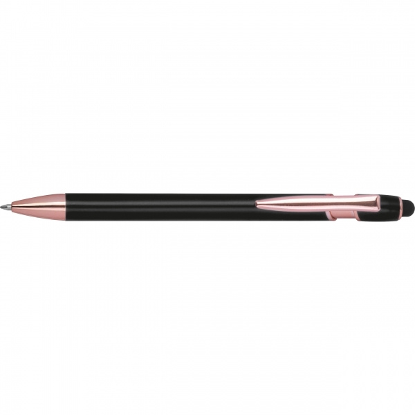 Semi-Gelschreiber aus recyceltem Aluminium mit Touchpen und blauschreibender Großraummine (1 mm Spitze). Ihre Werbung wird mittels Lasergravur auf den Schaft aufgebracht.