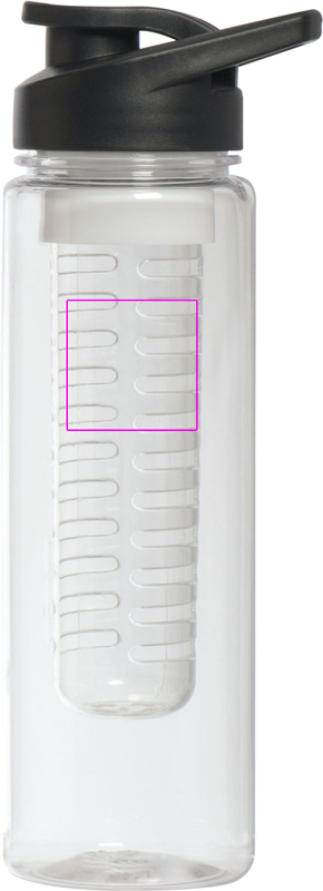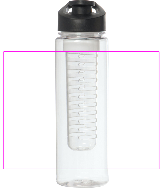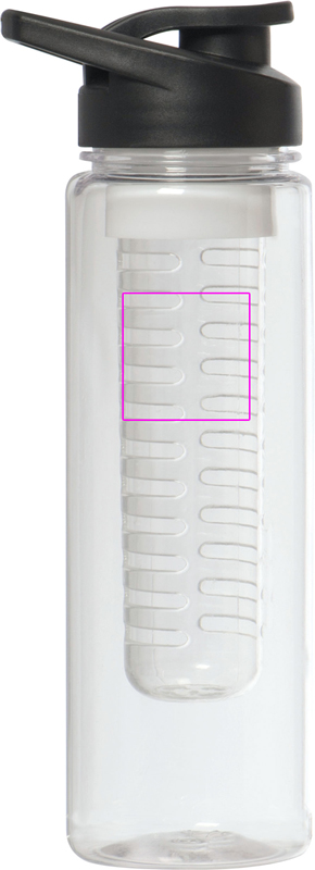 Große, auslaufsichere Trinkflasche BPA-FREI (Fassungsvermögen 700 ml) mit herausnehmbarem Fruchteinsatz. Im Deckel ist eine große Trinköffnung mit Verschluss und ein Tragegriff integriert. Ihr Logo drucken wir auf die Flasche.
