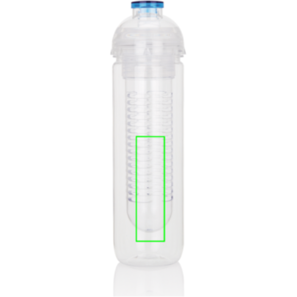 500ml Tritan Flasche mit Früchte-Aromafach. Bereichern Sie Ihr Wasser mit Vitaminen und einer Menge Geschmack durch das einfache Hinzufügen von frischen Früchten im Aromafach. Dieses Fach kann durch die Zugabe von Eiswürfeln auch als Kühlfach verwendet werden. Nur Handwäsche.