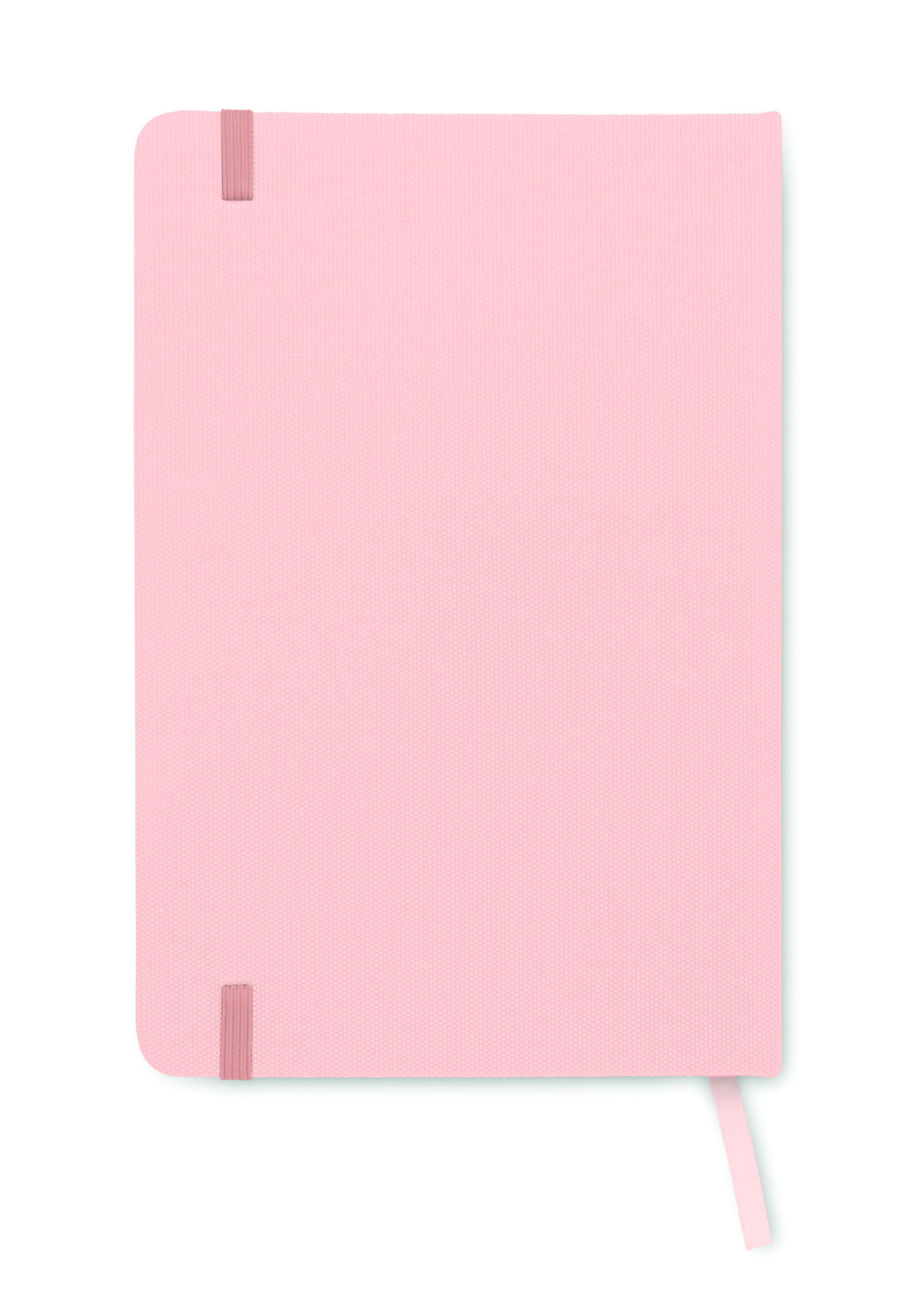 A5 notebook with hard 600D RPET cover. Casebound. 160 lined recycled paper pages (80 sheets). Matching elastic closure strap and ribbon bookmark.