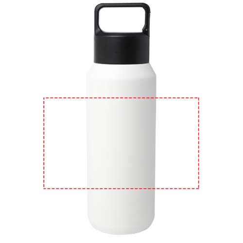 RCS certified stainless steel double-walled copper vacuum insulated water bottle featuring a lid with a built-in carabiner clip, making it easy to attach to a bag or belt. Also suitable for carbonated drinks. Delivered in a recycled cardboard gift box. Volume capacity: 600 ml.