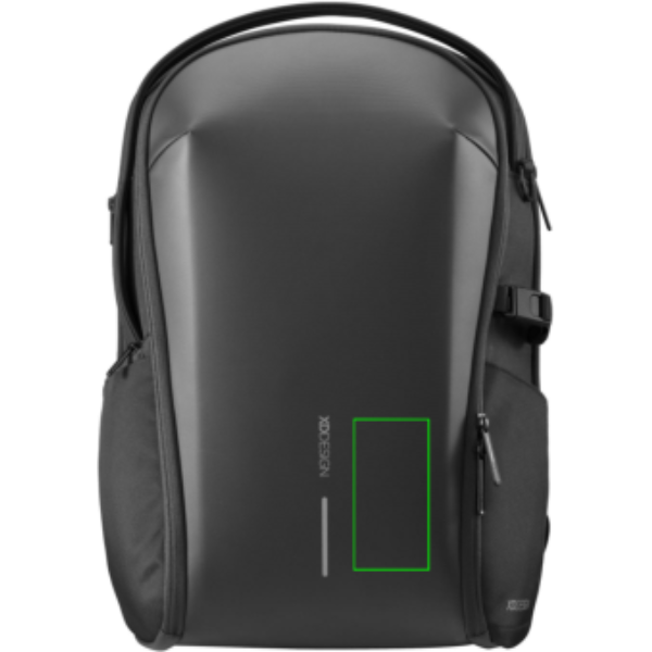 The Bizz Backpack is perfect for daily carry and light travel. The backpack features a 180-degree opening main compartment with an expandable section, internal mesh pockets, an integrated tech pouch and a detachable key leash. The rear pocket is protected with a waterproof zipper and features a padded sleeve for up to a 16” laptop. External easy access pockets are abundant including a high capacity water bottle pocket with a magnetic closure. The backpack is water-resistant and produced with recycled materials. Made from R-pet fabric with the AWARE™ tracer. With AWARE™, the use of genuine recycled fabric is guaranteed. 27% recycled content. Registered design®