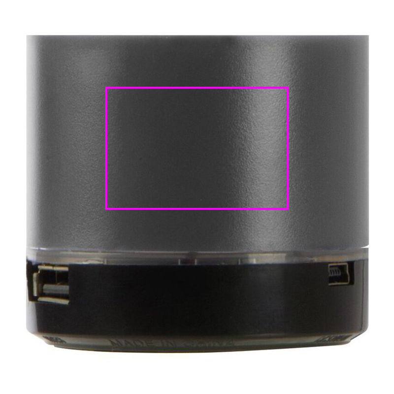 Trendy Bluetooth speaker including USB charging cable and a battery life of 30 - 60 minutes. Additional features: Top and bottom light effects, Micro SD card slot, Micro USB and USB port. We print your logo on the case.