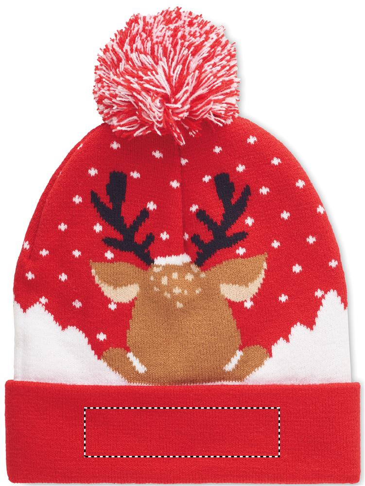 Christmas knitted beanie with 6 LED light (3 setting lights) with cuff and bobble in soft stretchable acrylic. 1 CR2032 battery included.