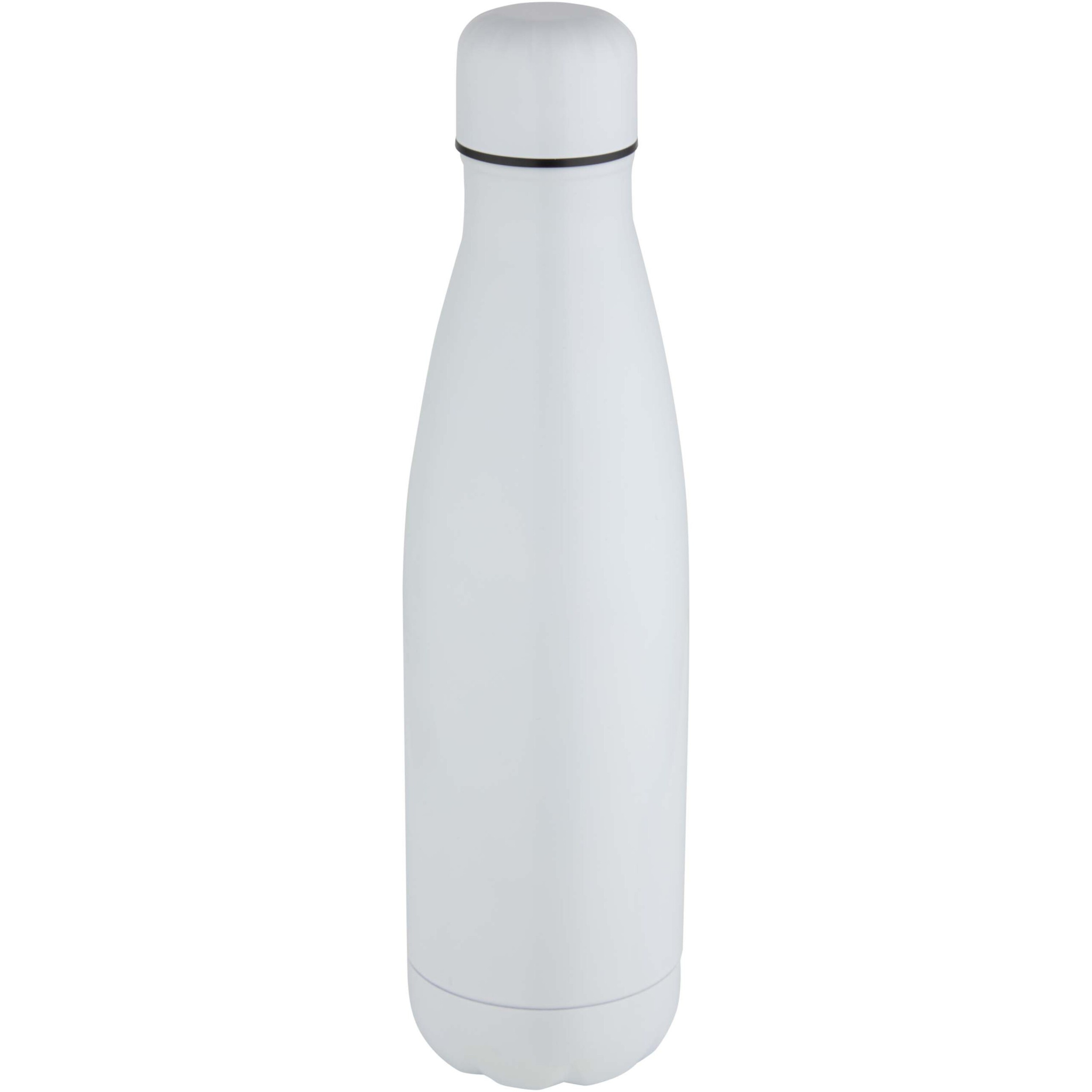Double walled, vacuum insulated stainless steel bottle with a special coating on the exterior that allows for sublimation printing. The insulated stainless steel keeps drinks hot or cold for several hours. Featuring a base that fits in most cup holders. Shiny finish. Presented in a recycled cardboard gift box. Volume capacity: 500 ml.