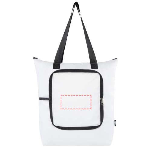 Designed for convenience and practicality, this lightweight yet durable tote cooler bag adapts to your needs by folding neatly into a compact pouch with a webbing loop to hang or carry around easily, making it perfect for picnics, grocery shopping, or outdoor adventures. Featuring a zipped main compartment with aluminium foil, a front open pocket, and two long handles made of quality smooth webbing material. Made of PVC free recycled polyester. Volume capacity: 15 litres.