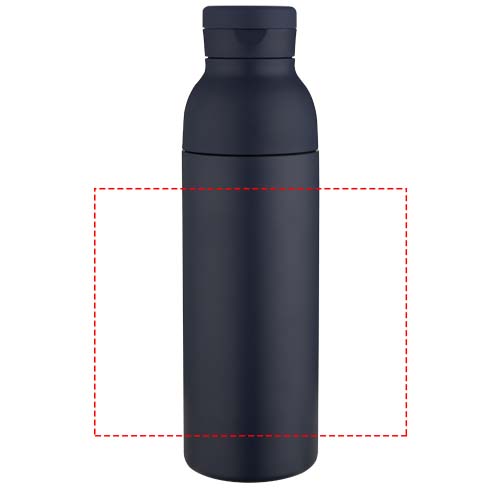 This gift set includes a 650 ml double-walled, vacuum-insulated bottle made from RCS certified stainless steel with copper plating for enhanced temperature retention. The bottle is compatible with three interchangeable lids included in the set. Lid 1 features a discreet built-in silicone handle for easy carrying. Lid 2 is a sports lid with a flip-top drinking spout and straw. Lid 3 has a convenient stainless steel push-top opening, allowing for one-handed use. The set is presented in a recycled cardboard gift box, making it a practical and thoughtful gift.