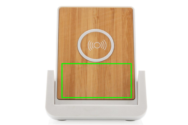 10W fast wireless charger made with RCS (Recycled Claim Standard) certified recycled ABS. Total recycled content: 47% based on total item weight. RCS certification ensures a completely certified supply chain of the recycled materials. Bamboo wireless charging area made from FSC 100 bamboo. With two USB ports on the back to charge via cable. The stand is designed to charge your phone both in the horizontal and vertical position. Making it perfect to watch videos or other content while charging. Wireless charging compatible with Android latest generations, iPhone 8 and up. Item and accessories PVC free. Including 120 cm type C charging cable made from RCS certified recycled TPE. Packed in FSC mix kraft box. Type-C Input 5V/2A; 9V/2A; Wireless output 5V/1A;9V/1.1A; (10W) Registered design®