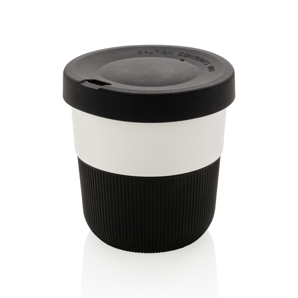 A sustainable alternative to traditional cups! Bringing style and practicality to your morning commute, this PLA coffee cup is ideal for transporting your favourite hot beverage. Manufactured from plant material (PLA), so not only stylish but also kind for the planet. Comes with a silicone grip and lid for your convenience. Fits conveniently under most coffee machines. 100% melamine free. Capacity 280ml.