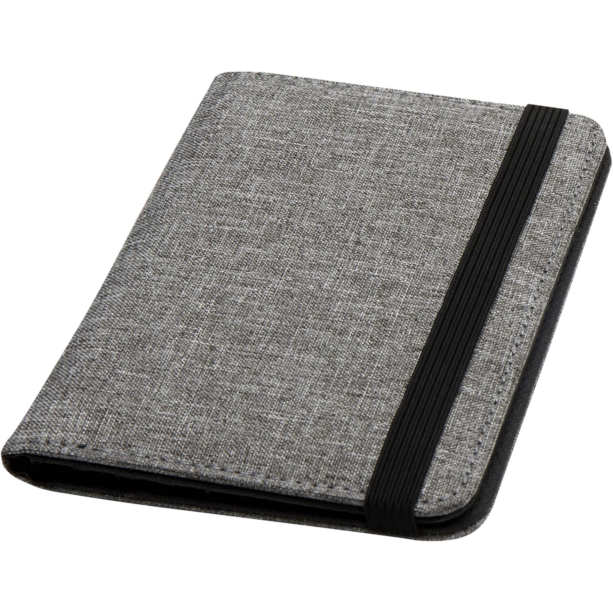 The Ross RFID passport holder is made of recycled polyester and is ideal for people constantly on the go, featuring dedicated pockets for passport, tickets, credit cards, and other items. Comes with an elastic band closure to keep the contents safe and secure.