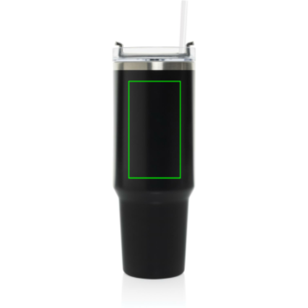 Meet Stadley, the ultimate 1200 ml tumbler designed for those who need a little extra. Its comfort-grip handle and slim base make it easy to carry and fit into most cup holders, keeping you hydrated on the go. Outside made from durable recycled stainless steel, Stadley’s double-walled, vacuum-insulated body keeps drinks at the perfect temperature. It features a spill-proof lid with a dual function for sipping or using the included recycled steel straw with a silicone tip. RCS-certified, with 29% recycled content, and BPA-free. Perfectly practical and lower impact, we recommend handwashing.Bulk packed.