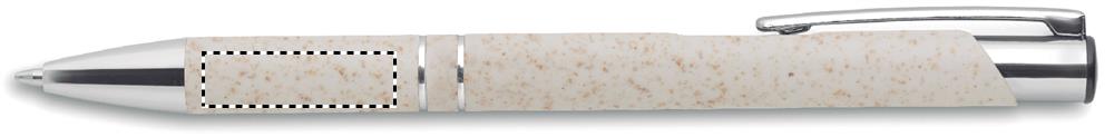Push button ball pen in 50% wheat straw and 50% ABS material with silver fittings. Blue ink.
