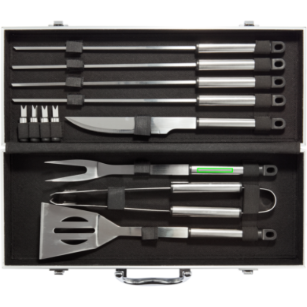 Logotrade ärikingi foto: 12 osaline grillikomplekt alumiiniumkarbis