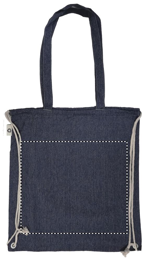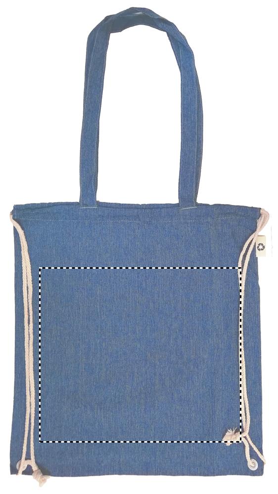 2-tooniline taaskasutatud puuvillast ja taaskasutatud polüestrist poekott pingutusnööri ja pikkade sangadega (20%/80%). u. 140 gr/m². See üksus võib pärast printimist kokku tõmbuda.
