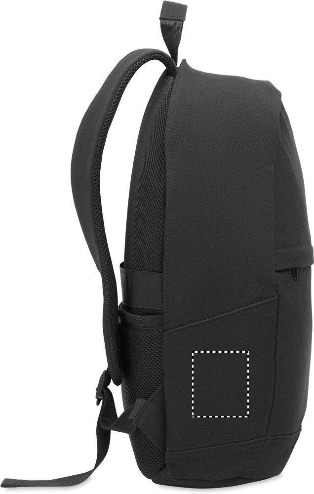 15-tollise sülearvuti seljakott, valmistatud taaskasutatud eelkasutatud puuvillast ja taaskasutatud polüestrist, kohandatava trükilahendusega., Must