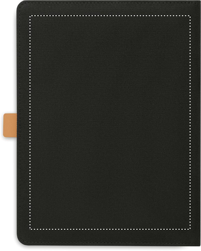 A5 portfell kunstnahast detailidega RPET-st. Vahetatav kõva korgist kaanega A5 märkmik. Juhtum köidetud. 128 taaskasutatud paberist vooderdatud lehte (64 lehte). Pliiatsihoidja. 2 kaardihoidjat ja üks suur sahtel. Elastne metalldetailidega kinnitusrihm.
