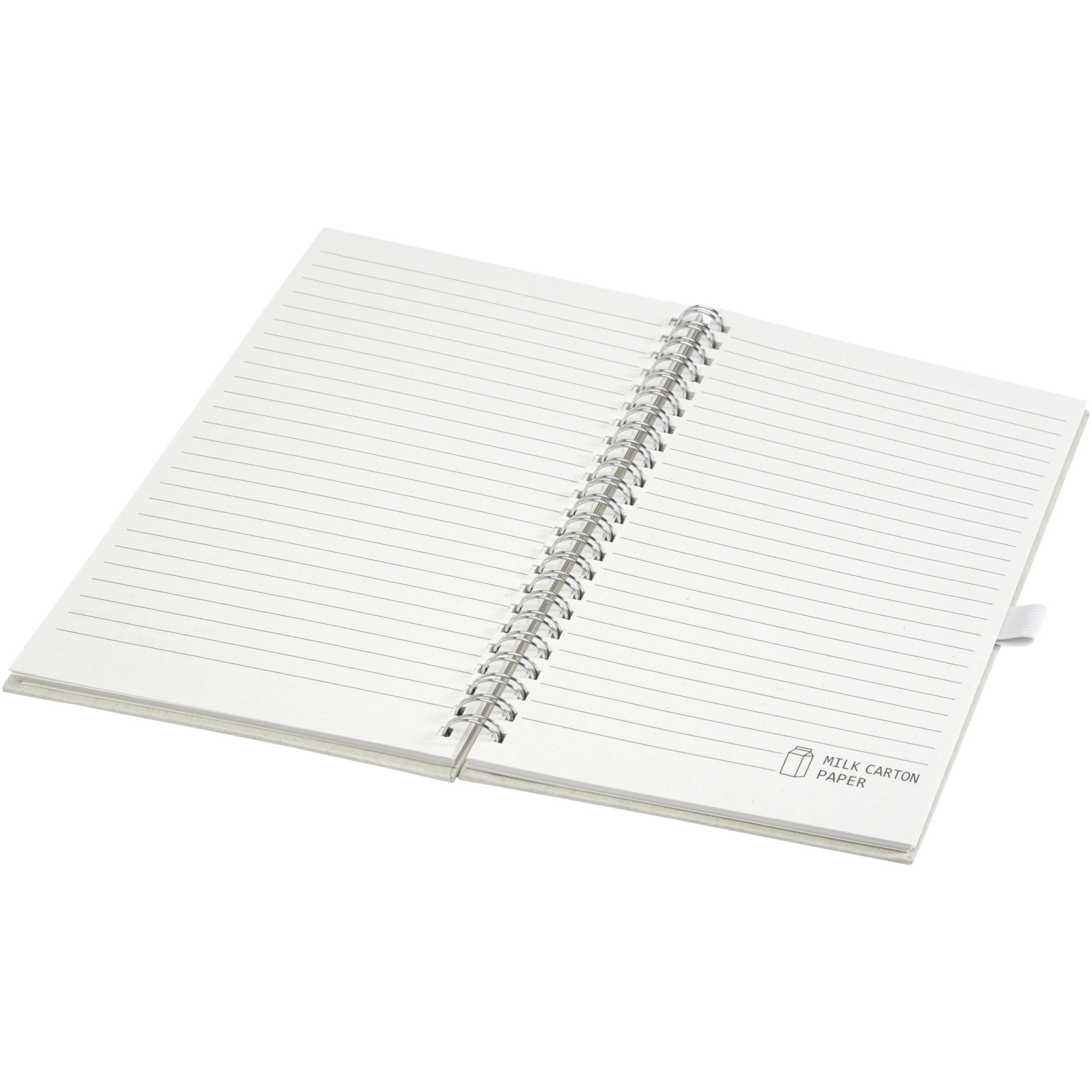 A5-formaadis spiraalmärkmik 70 80 g/m² vooderdatud lehega, valmistatud taaskasutatud piimapakkidest (kuni 70%). Kasutatud piimapakke kogutakse, sorteeritakse, töödeldakse ja muudetakse paberiks, muutes jäätmed tõeliselt kasulikuks.