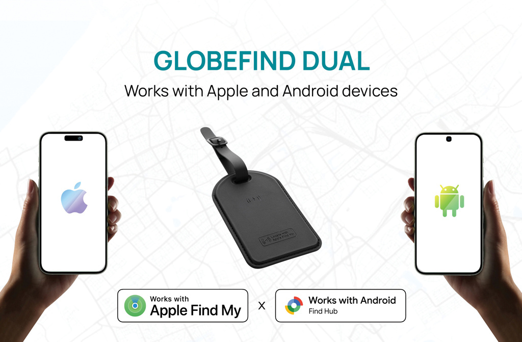 Logo trade ärikingituse pilt: Globefind Dual RCS pagasisilt ülemaailmse asukoha määramisega