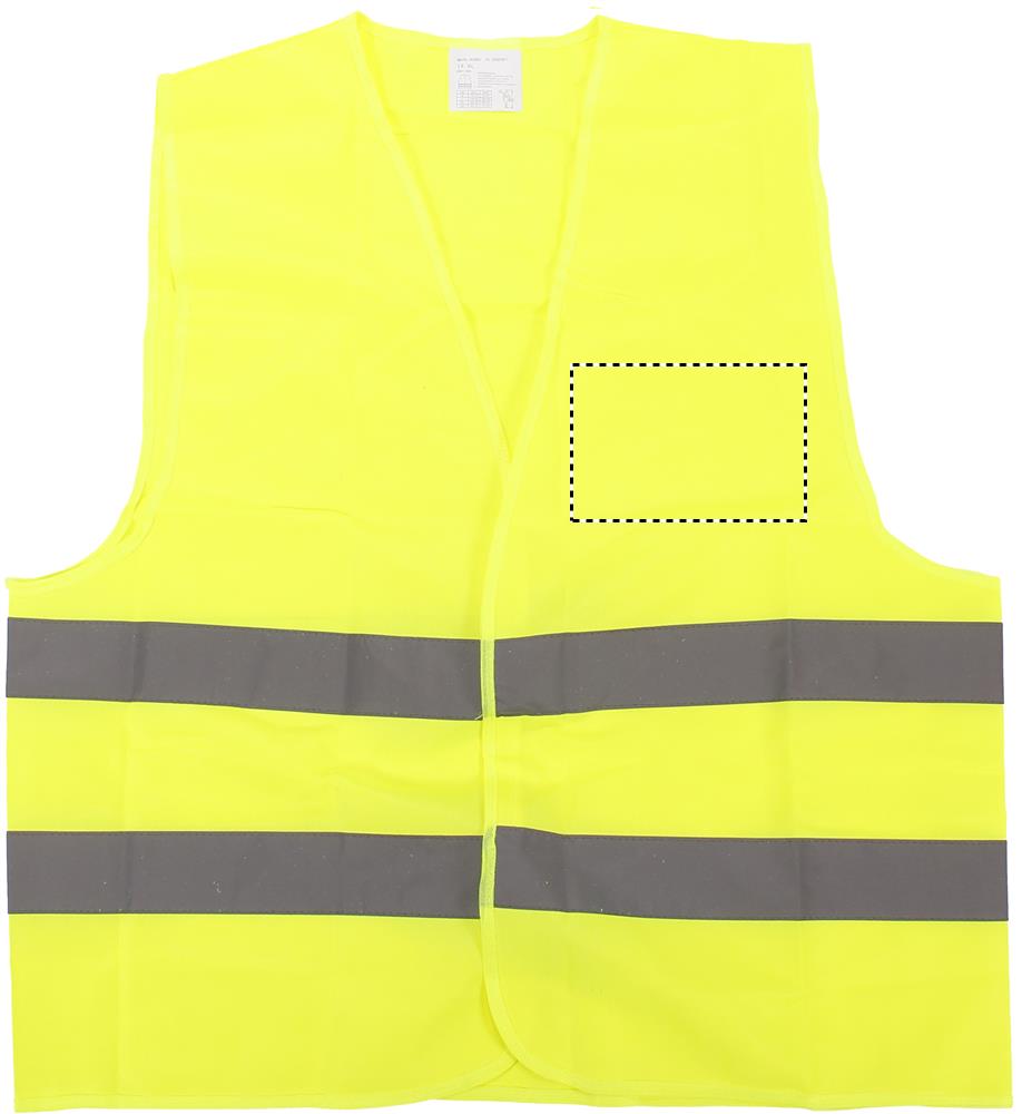 Turvavest on valmistatud 100% kootud polüestrist klassi 2 hästi nähtava helkurteibiga. EN ISO 20471.