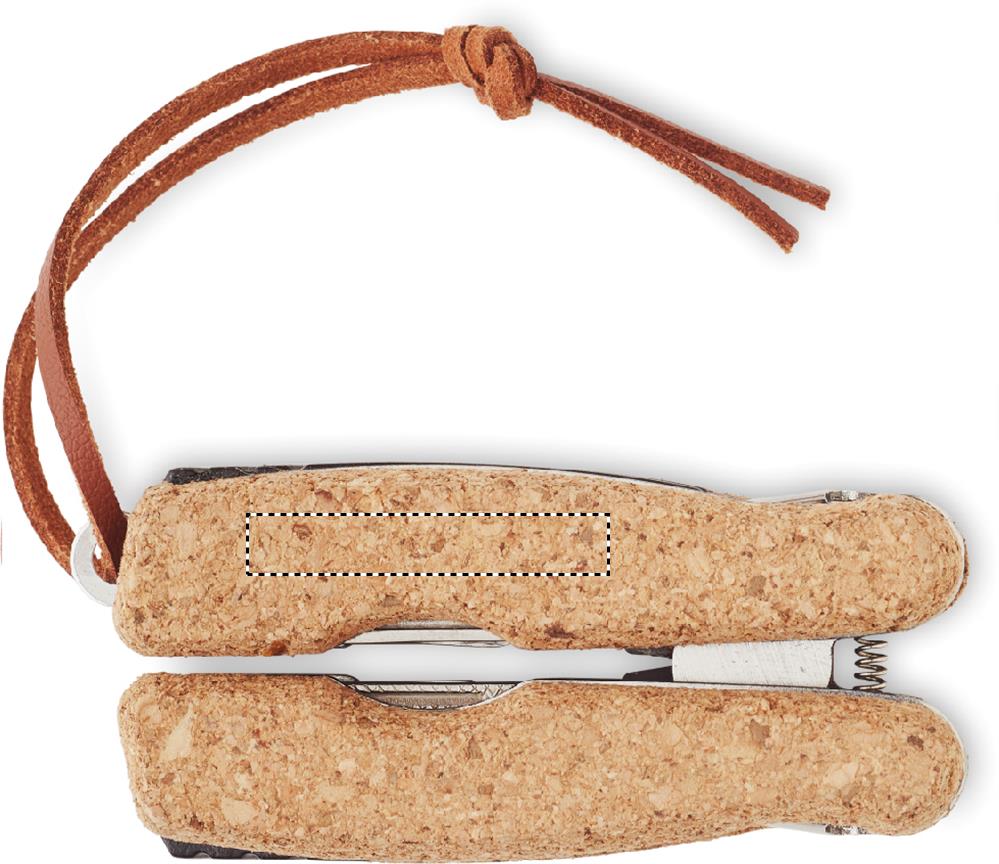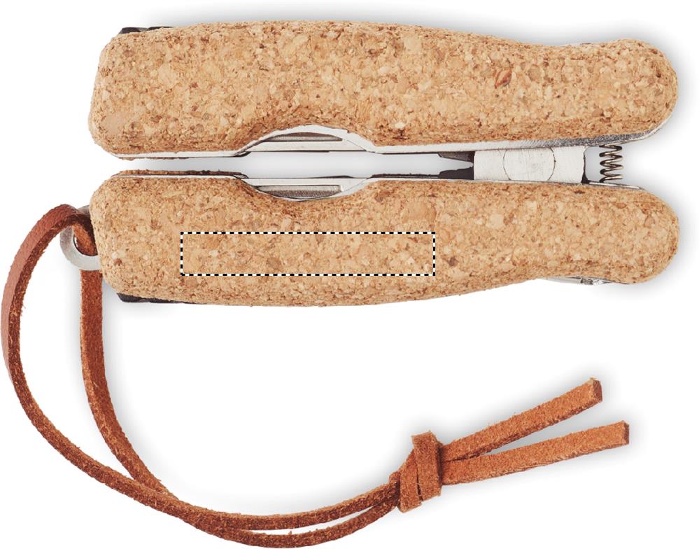 Roostevabast terasest multifunktsionaalne taskunuga korkkatte ja PU käepideme nööriga. 9 funktsiooni. Sisaldab: Tangid, 2 avajat, Philipsi otstega kruvikeeraja, saelehed, nuga, viil ja kruvikeeraja lameda otsaga. Kork on looduslik toode, ühe eseme värvis ja suuruses võib esineda väikesi erinevusi, mis võivad mõjutada lõppviimistlust.