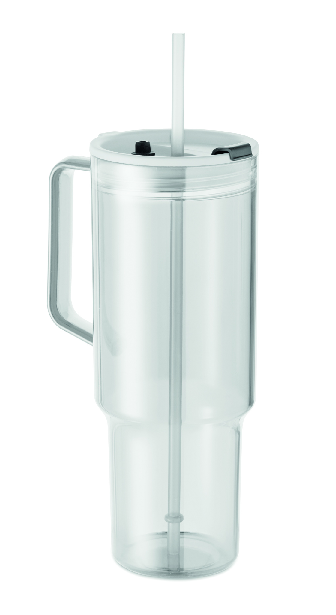 RPET-ist valmistatud kaane ja PP-kõrrega joogitops. Mahutavus: 1200 ml.