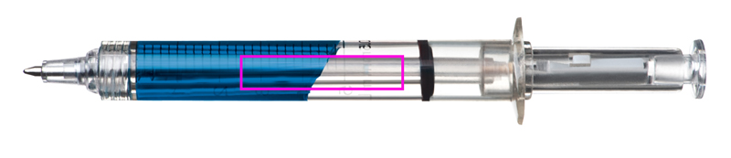 Süstlakujuline pliiats, sinise või punase plastikust täidisega. Trükime teie logo musta värviga, skaala vastas.