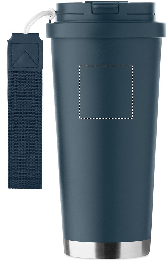 Topeltseinaga 90% taaskasutatud roostevabast terasest (90% taaskasutatud roostevaba teras ja 10% roostevaba teras) termos PP-kaanega (2-ühes joogi- ja kõrrekaas) ning RPET-kanderihmaga. Lekkevaba. Mahutavus: 500 ml.