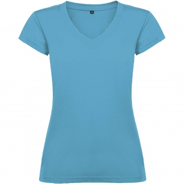 Victoria lühikeste varrukatega naiste v-kaelusega T-särk, Türkiissinine