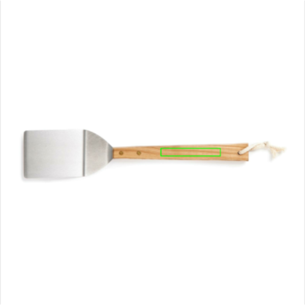 Tugev roostevabast terasest spaatel, mis sobib suurepäraselt kala või pitsa praadimiseks. Saarepuidust käepide.