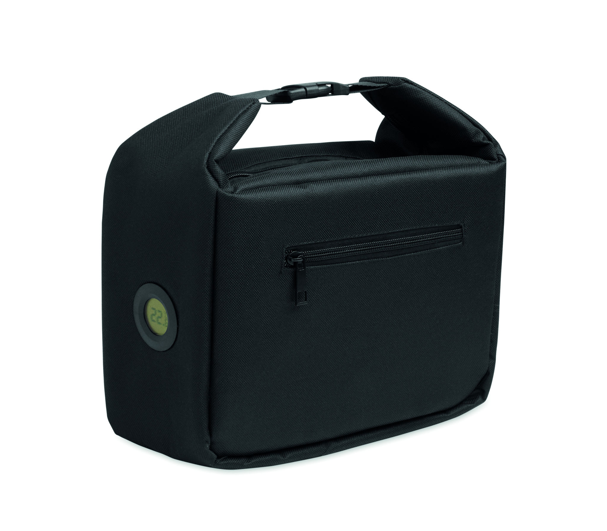 Külmakott sisemise temperatuurinäidikuga, valmistatud 600D RPET materjalist, 3 mm PE-vahust ja alumiiniumfooliumist sisemusega. Klambriga suletav. Küljel lukuga tasku. Mahutavus: 10 l.