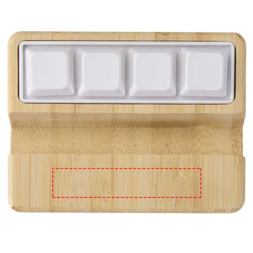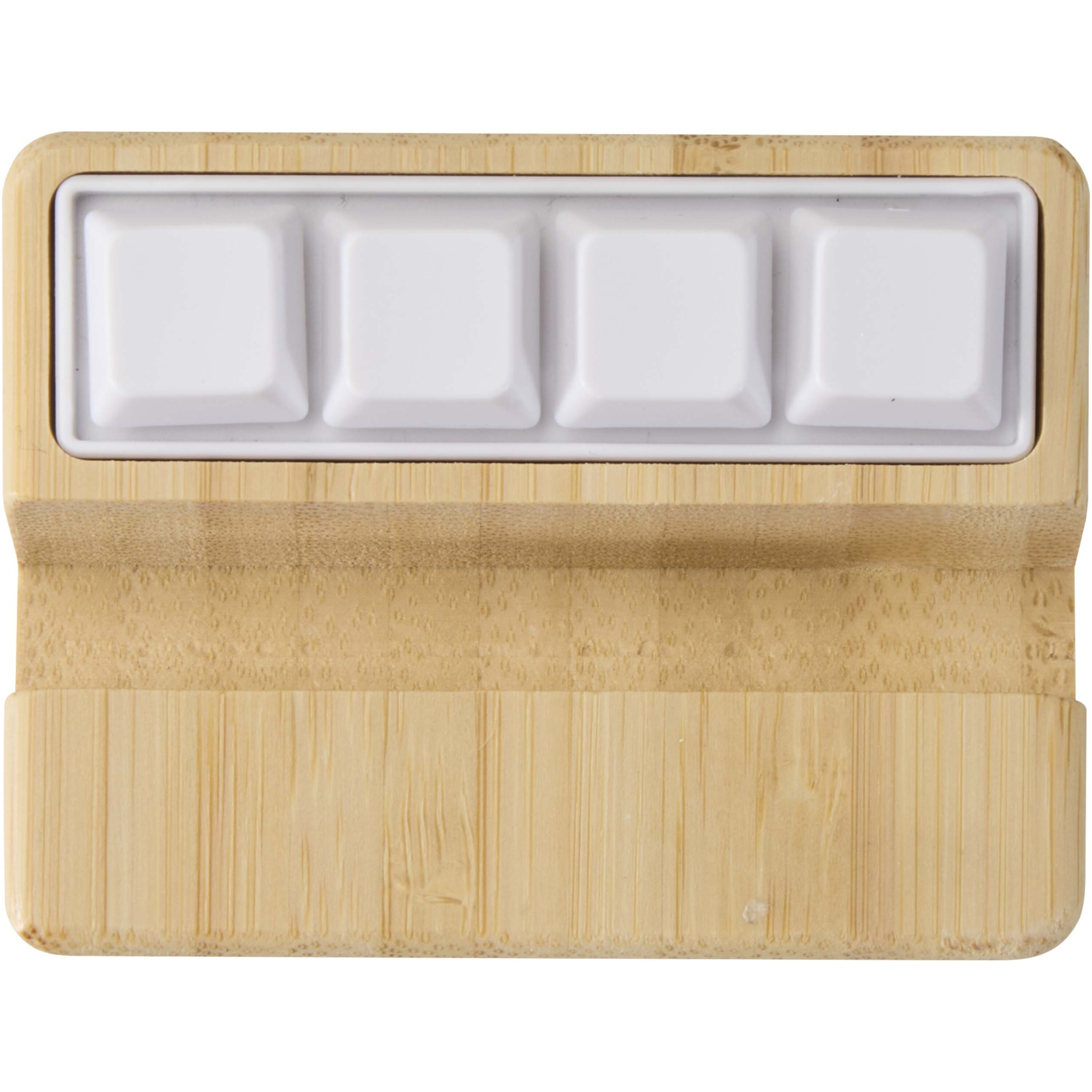 Logo trade liikelahjat mainoslahjat kuva: Algol kierrätetystä muovista valmistettu puhelinjalusta ja hypistelylelu bambuyksityiskohdilla