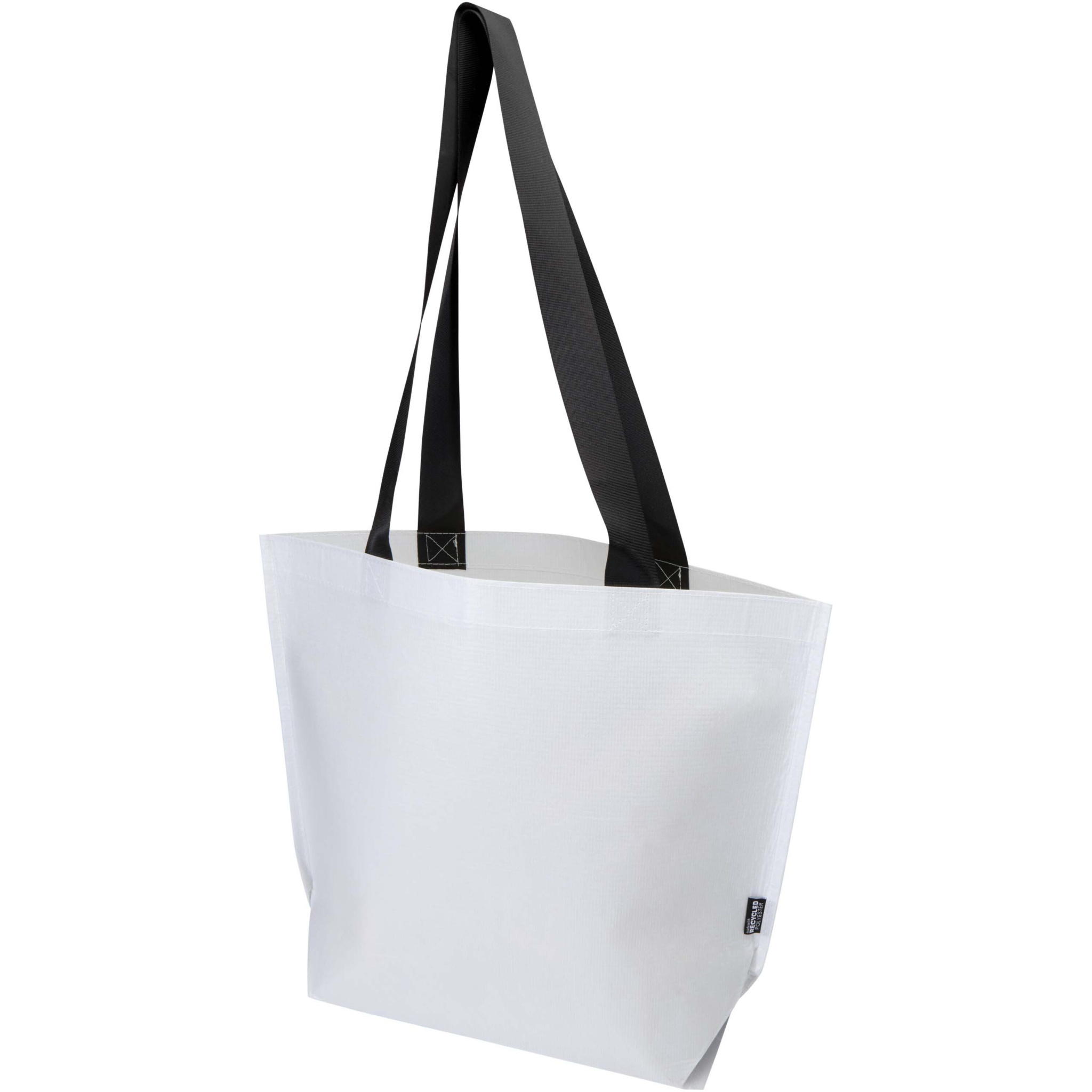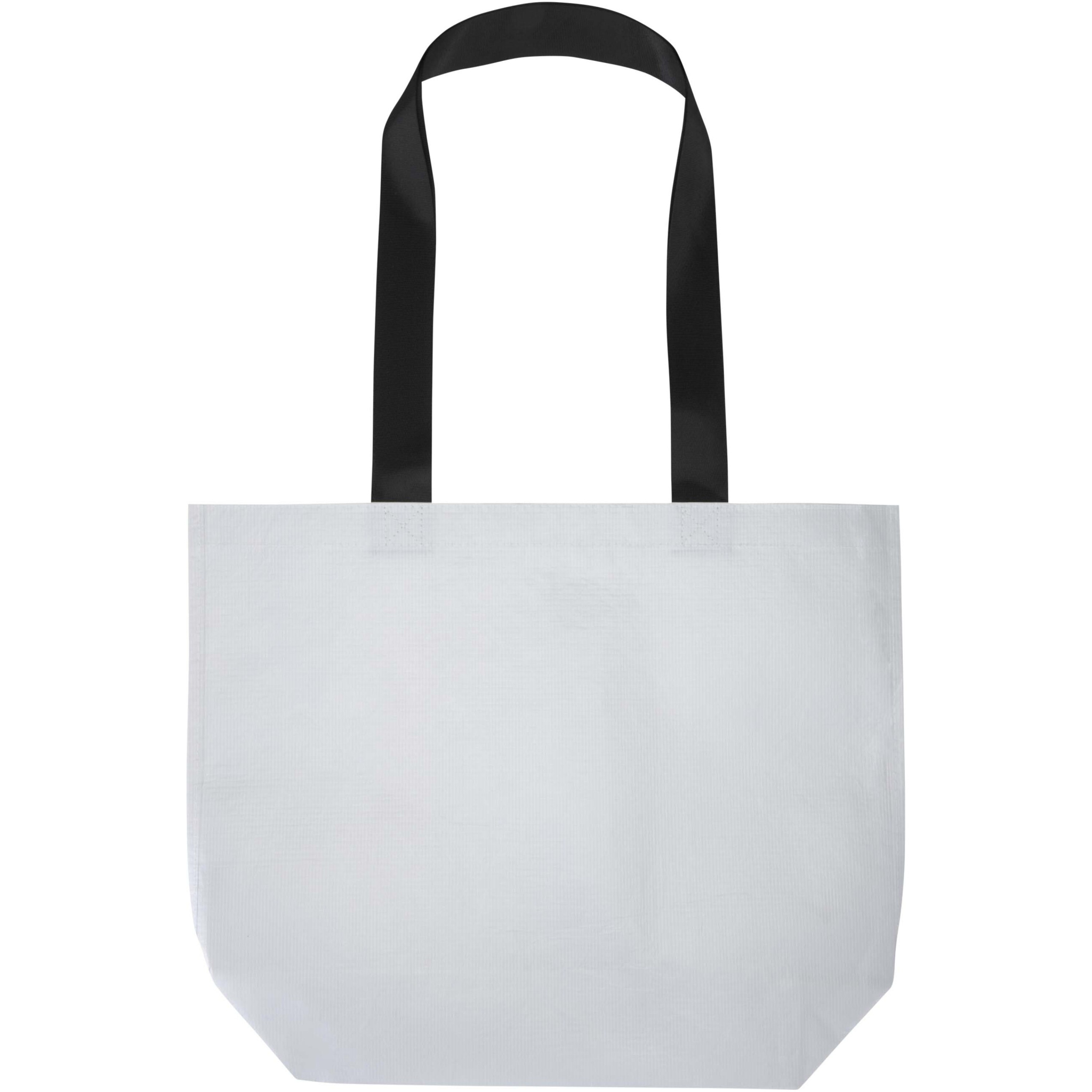 Kaksinkertaisella, laminoidulla pohjalla varustettu Duo-kassi on valmistettu 150 g/m2:n GRS-sertifioidusta kaksoislaminoidusta RPET-materiaalista, ja se on kestävä ja veden pitävä. Siinä on tilava avoin päälokero, tukevat, vahvistetut kahvat ja leveä pohja lisäkapasiteettia varten. Kantokyky jopa 10 kg. Kassi on tyylikäs ja luotettava vaihtoehto päivittäisille ostoksille, messuille tai mainostilaisuuksiin. Tilavuus: 18 litraa.