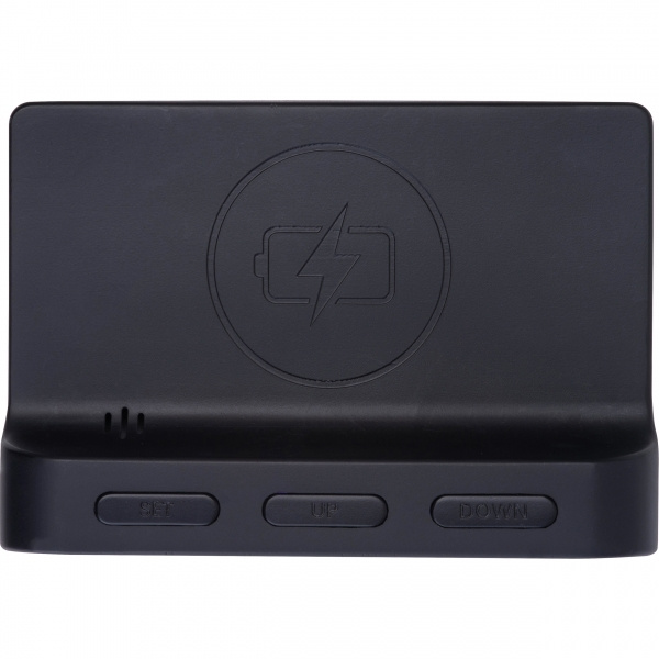 Logotrade liikelahja tuotekuva: Herätyskello ja langaton laturi ADELAIDE