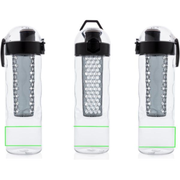 Lisää terveellisiä hedelmän makuja veteesi. Tämä hunajakenno-yksityiskohdilla varustettu pullo mahdollistaa kätevän yhden käden juomisen. Paina painiketta ja kansi aukeaa. Käytössä on erityinen lukitusmekanismi, jotta käyttäjät eivät vahingossa paina painiketta. Sisältää kantohihnan. Tämä infuusiopullo on valmistettu kestävästä ja innovatiivisesta tritanista. Hajuton ja 100% BPA-vapaa. Sisältö: 700ml. Rekisteröity design®