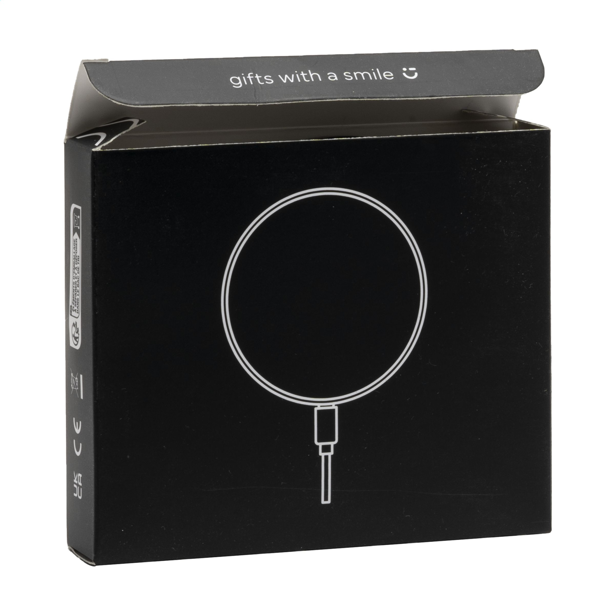 10 W langaton laturi. Kotelo on valmistettu kierrätetystä ABS-muovista. Yhteensopiva kaikkien mobiililaitteiden kanssa, jotka tukevat langatonta QI-latausta (uusimman sukupolven Android ja iPhone 8 ja uudemmat). Tulo: 9V/1.1A. Langaton lähtö: 9V/1.1A 10W. Mukana kaapeli (USB-A ja tyyppi C) ja käyttöohje. Tämä tuote ja sen lisävarusteet ovat PVC-vapaita. RCS-sertifioitu. Kierrätysmateriaali yhteensä: 20 %. Jokainen tuote on pakattu erikseen.