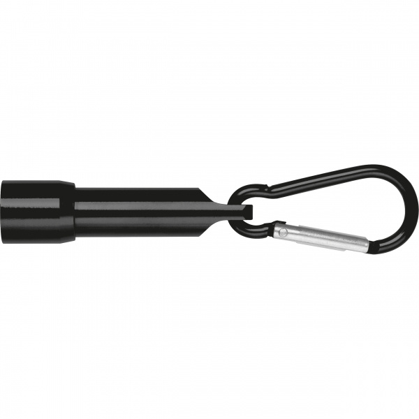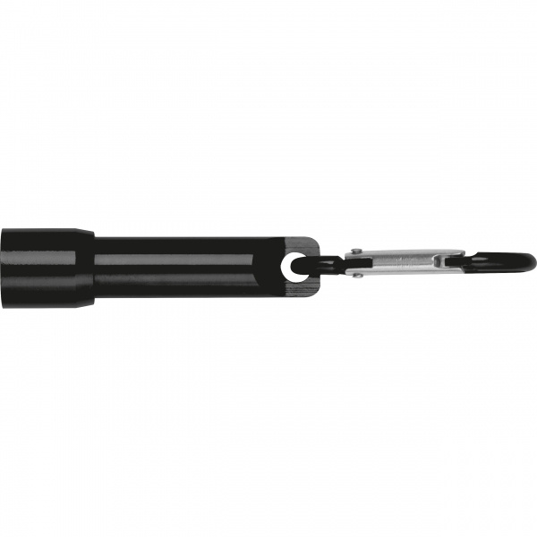 Kierrätetystä alumiinista valmistettu minitaskulamppu karbiinihaalla. Sisältää 4 nappiparistoa. Logosi on kaiverrettu taskulamppuun laserkaiverruksella.