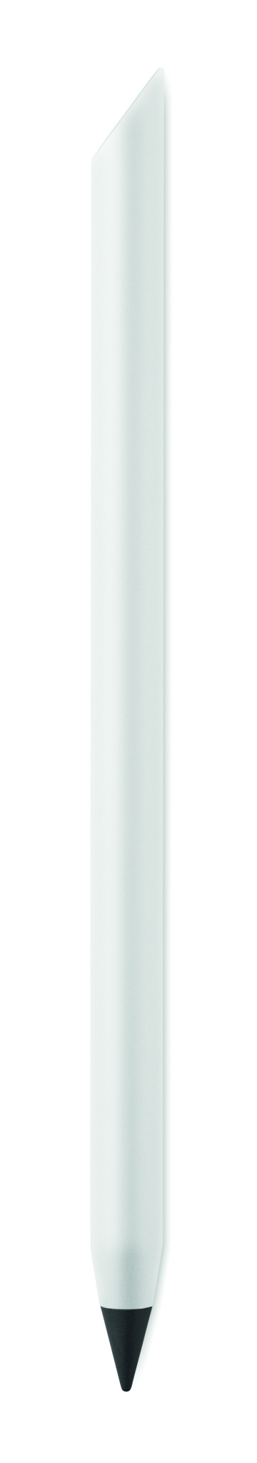 Pitkäikäinen kierrätetystä alumiinista valmistettu musteton kynä. Kynä kirjoittaa grafiittikärjellä, jossa on muovinen suojakuori.