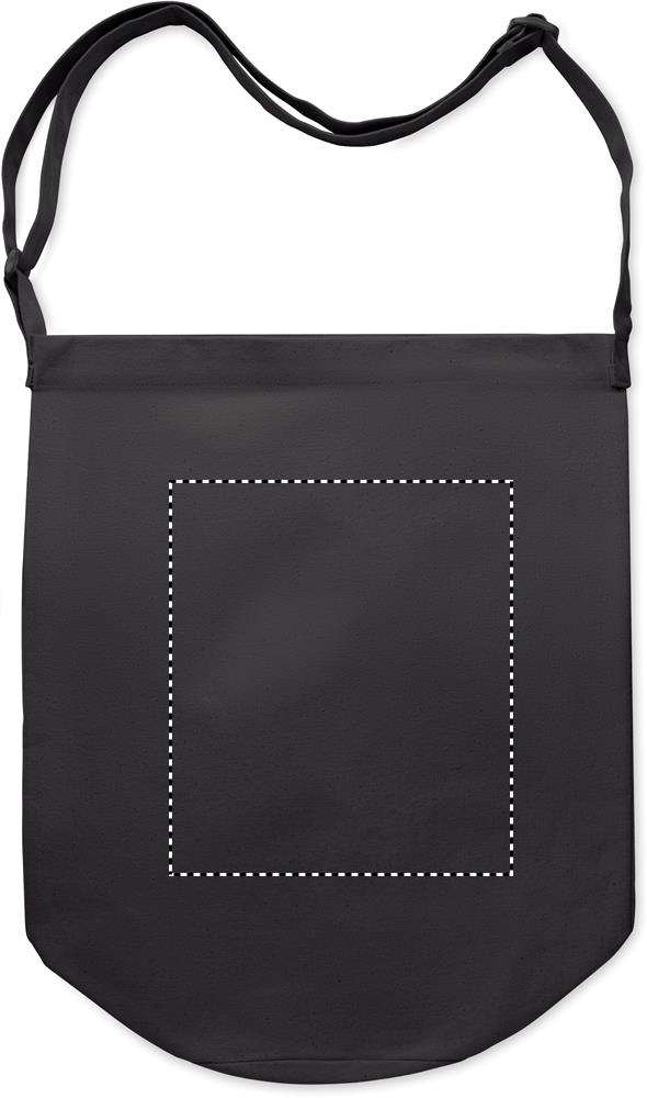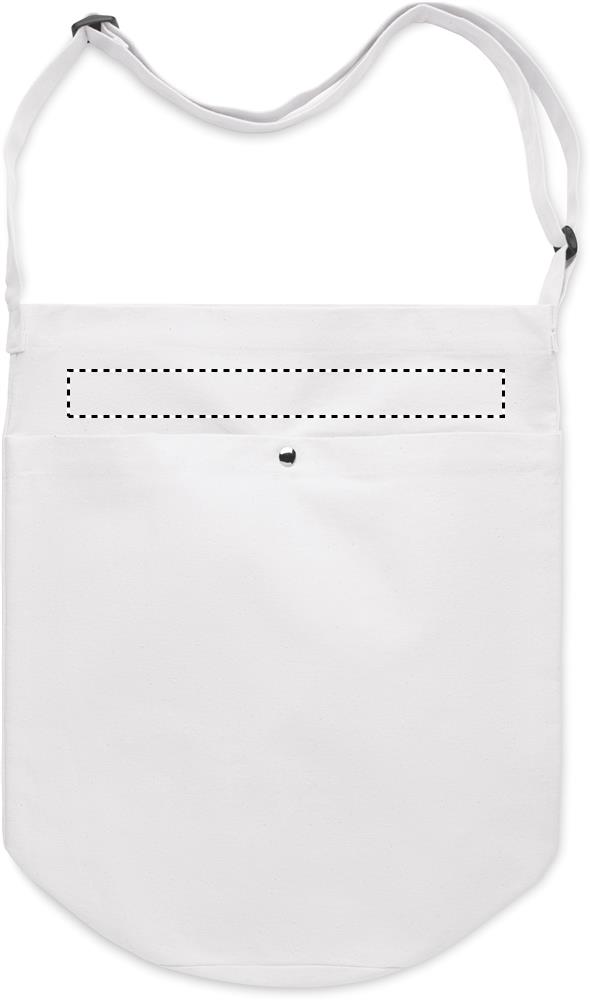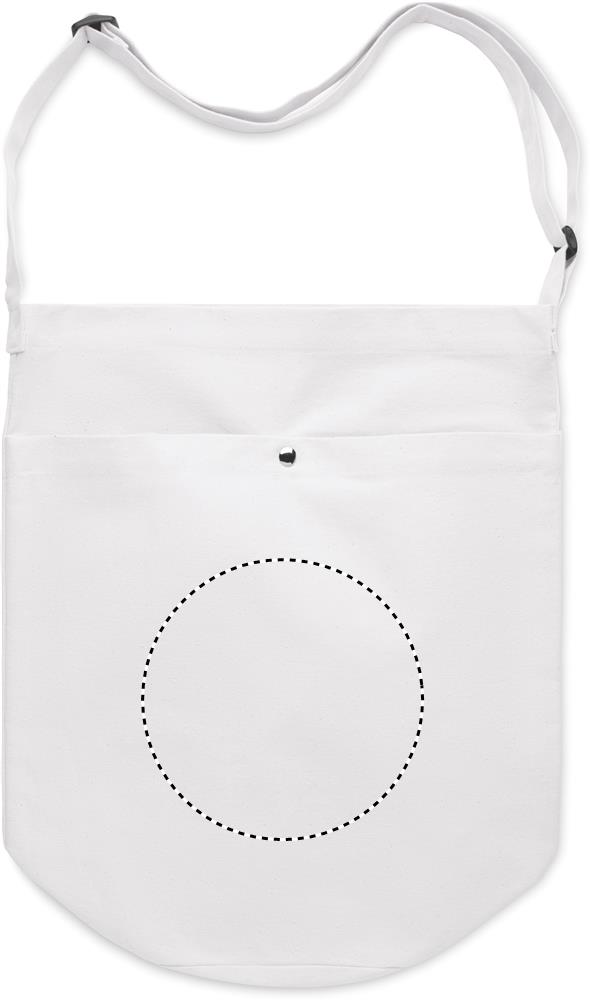 Kangaskassi, jossa pitkä säädettävä olkahihna ja suuri etutasku, jossa on nepparikiinnitys. Sisältää sisätaskun. Materiaali 270 gr/m²canvas.