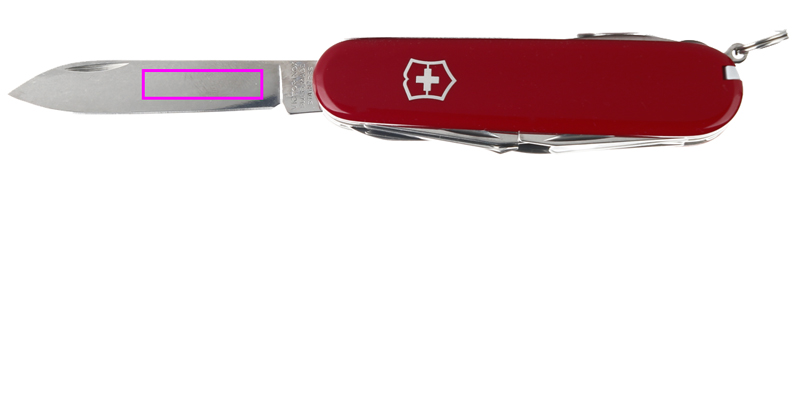 Ominaisuudet: 1.iso terä 2.pieni terä 3.korkkiruuvi 4.tölkinavaaja jossa: 5.-pieni ruuvimeisseli 6.pullonavaaja: 7.-iso ruuvimeisseli 8.-langanpoistaja kalvin 9.rei'itin 10.ompelusilmukka 11. avaimenperä 12.pinsetit 13.hammastikku 14.sakset 15.koukku 16.puusaha