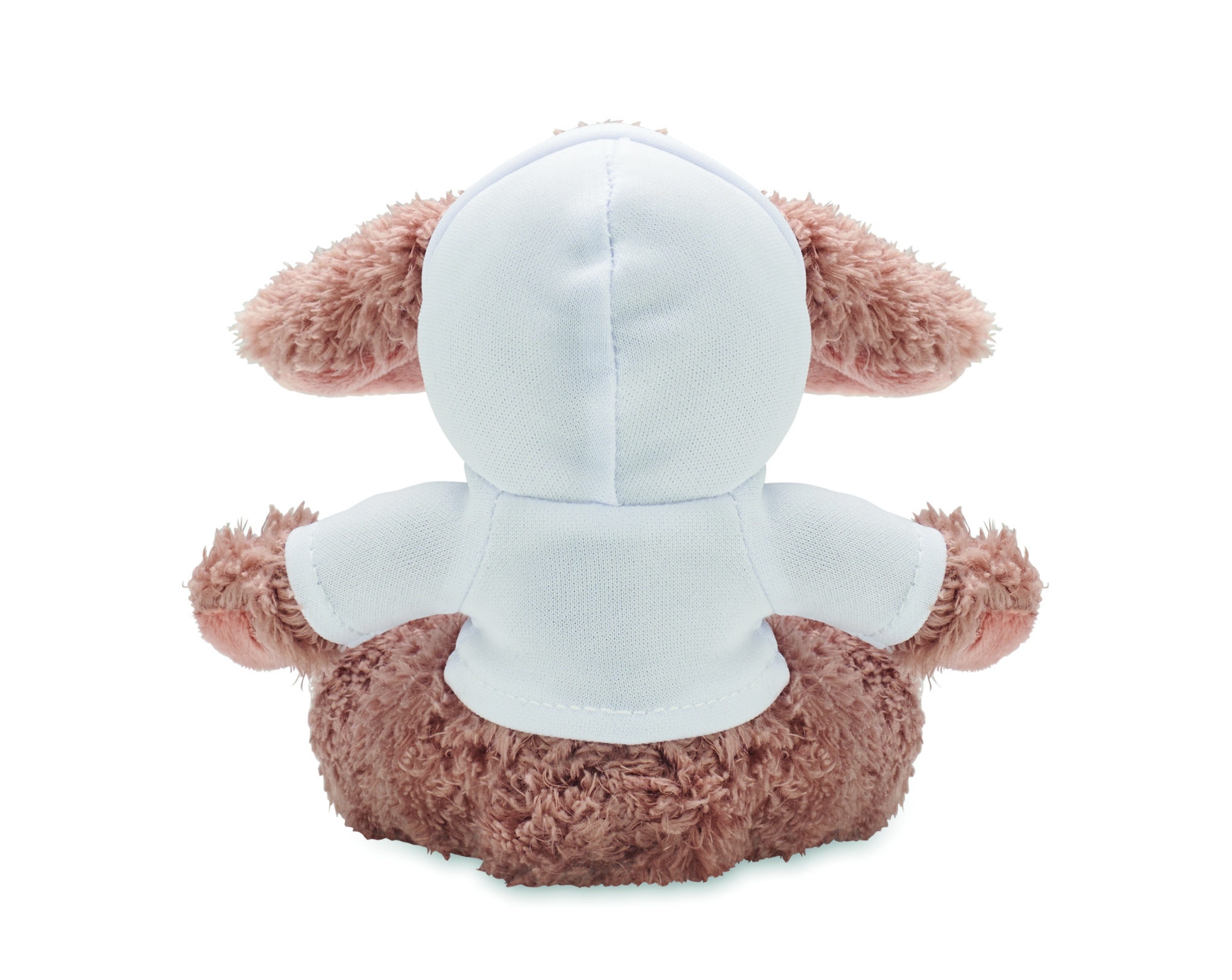 Pupu pehmolelu, jolla on hupullinen paita. Ihanteellinen sublimointipainatusta varten.
