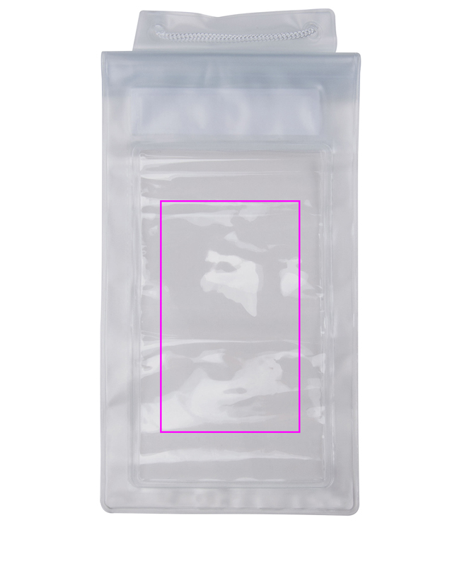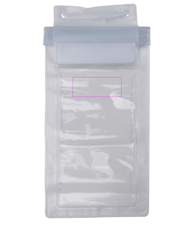 Vedenpitävä puhelinkotelo, jossa silmukka ja paniikkilukko. Painamme logosi pussin keskelle.