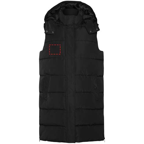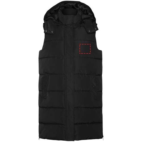 Toppaliivi irrotettavalla hupulla. Korkea kaulus. Edessä vetoketju läpän alla. Kaksi taskua painonapeilla. Sivuissa vetoketjut. Sisäpuolella rintatasku. Vettä hylkivä.